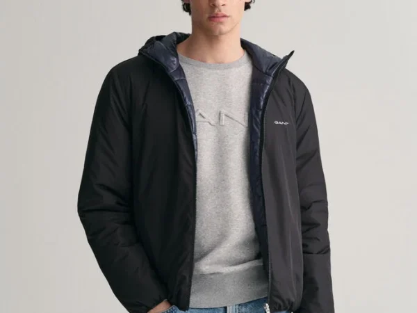 Concebido em poliéster reciclado com um acabamento repelente de água, este casaco com capuz reversível adiciona uma camada extra de estilo, quando precisa de um pouco mais de aquecimento. Com um corte normal e comprimento pela anca, esta peça reversível apresenta um lado com acolchoado com canais e outro lado liso, para poder escolher entre dois visuais. Os seus detalhes incluem um capuz com cordão ajustável, bolsos embutidos de lado com fecho com botões de pressão ocultos e bainha e punhos elásticos para conforto adicional.