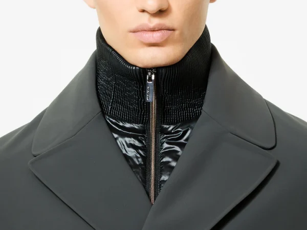 €159,00O preço original era: €159,00.€143,00O preço atual é: €143,00.Blusão de corte regular com gola clássica, confeccionada em tecido técnico macio e com elasticidade bidirecional. Este tecido torna a peça confortável e perfeita para o outono. Além disso, a peça conta com enchimento ecológico DuPont Sorona®, macio e leve, reconhecido por seu alto desempenho técnico em termos de elasticidade, retenção de forma e, acima de tudo, excelente conforto térmico. Uma silhueta clássica inspirada no estilo universitário a torna elegante e aerodinâmica, perfeita para qualquer ocasião. Possui fecho de botão de pressão, dois bolsos embutidos e punhos e bainha elásticos. Uma pequena aba com uma placa metálica com o logotipo é exibida nas costas.