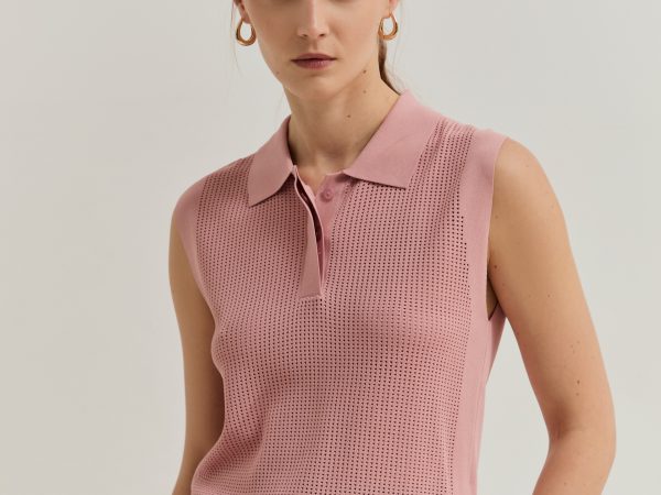 T-shirt de manga curta confecionada em malha de algodão com efeito crochet. Destaca-se pelas mangas multicoloridas e pelo decote em malha de contraste. Apresenta uma bainha ajustável com cordão e ponteiras de franjas, conferindo um acabamento artesanal e descontraído à peça.